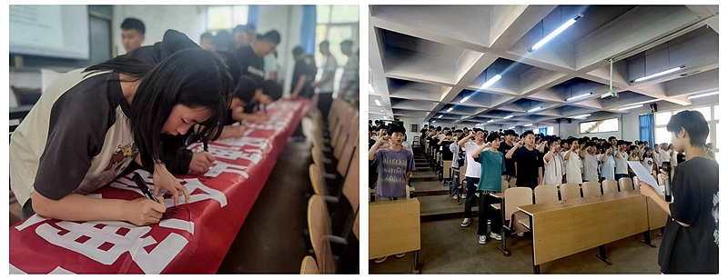 活动中,保卫科组织学生观看了“安全生产月”主题宣传片和安全事故警示教育片,听取了安全教育讲座,并向全体同学发出安全倡议,进行安全宣誓。要求同学们加强自我教育,增强安全防范意识,学会自我保护。最后,全体同学在安全横幅上签名,郑重承诺自己会遵纪守法,做自己安全的第一责任人。