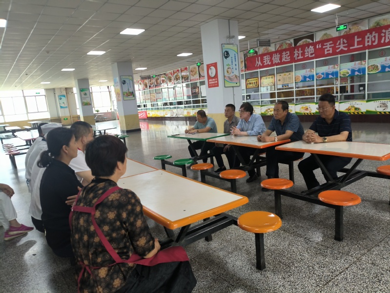 为进一步加强食堂内部管理,普及食品安全知识,提高食堂服务质量,培养食堂从业人员良好的卫生习惯,预防食物中毒和食源性疾病的发生,确保在校师生的饮食卫生安全,维护校区正常教学秩序,6月18日,技师学院管理部后勤科组织相关人员在食堂大厅召开以食品安全为主题的会议,校区负责人参加。