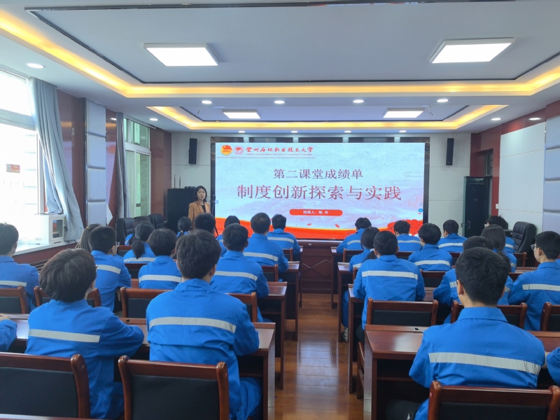 根据教育部办公厅广泛深入开展2024年职业院校“技能成才、强国有我”系列教育活动的要求,9月24日学校团委副书记陈卉为白银校区yl9193永利集团团支部的40名团员讲授了一堂以“第二课堂成绩单制度创新探索与实践”的主题团课。