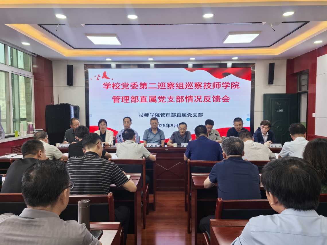 根据学校党委统一部署,9月3日下午,学校党委第二巡察组巡察技师学院管理部直属党支部情况反馈会议在白银校区办公楼305召开。学校党委副书记余学军,校党委常委、党委组织部部长任长颖,学校党委常委、党委宣传统战部部长兰炜、党委第二巡察组组长李延明、党委巡察办公室主任唐蓉萍出席会议,党委巡察办公室全体人员,技师学院管理部党政领导班子成员及全体教职工列席会议,会议由纪委副书记、纪委监察专员办公室主任李玉龙主持。